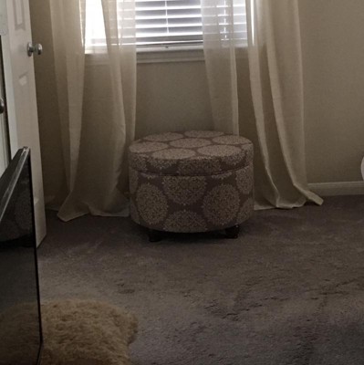 I really like this ottoman, but it arrived with the inside lining already falling apart. It is a nice size and great storage for blankets. I bought the black/white pattern ottoman, it makes for a good accent piece.