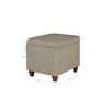 This tan ottoman offers simple and timeless design in a neutral linen-like fabric with wood legs in a rustic brown finish. Store extra pillows or blankets in a bedroom, hide remotes or game controllers in the family room, or conceal shoes, gloves or scarves in the entryway. When needed, the ottoman with storage can double as a coffee table in a living room or provide extra seating in a dining room. With a convenient hinged lid and easy to access spacious storage, this ottoman will be a great addition to any home! Easy to assemble and maintain. Please note that fabric and wood colors may appear slightly different due to variations in lighting or screen settings.