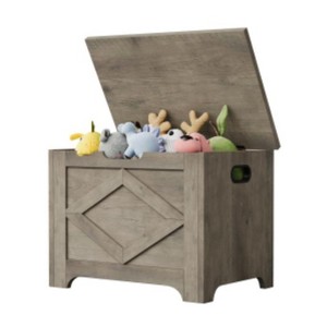 Storage Ottoman with Irregular Legs (MDF) - Washed Grey with Rhombus Pattern