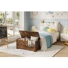 39.4-inch retro MDF ottoman with rhombus pattern and irregular legs, offering dual seating and storage use. It features a spacious interior for daily clutter organization, blending vintage style with practicality, perfect for home and apartment spaces.