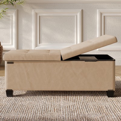 StorageBud Fabric Storage Ottoman Bench with Bins, 43-in Storage Bench for Bedroom, Folding Foot Rest Ottoman for Living Room, Taupe
