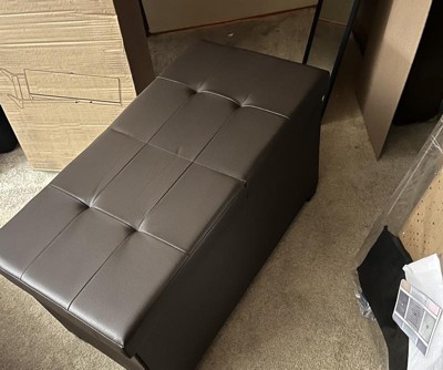 - Sleek faux leather finish adds a modern touch and works great as a footrest, entryway bench, or end-of-bed seat.