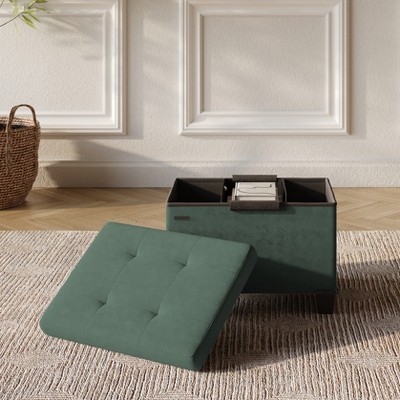 StorageBud Leather Storage Ottoman Cube with Small Bin, 16-in Square Ottoman with Storage for Entryway or Bedroom, Small Ottoman Foot Rest, Light Gray