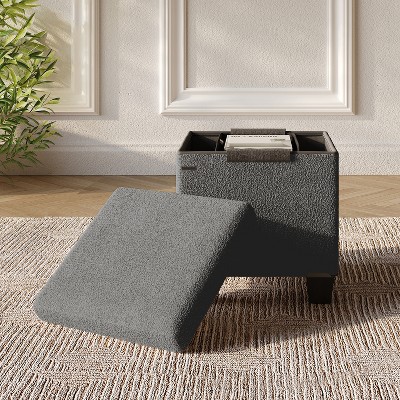 StorageBud Leather Storage Ottoman Cube with Small Bin, 16-in Square Ottoman with Storage for Living Room and Bedroom, Small Ottoman Foot Rest, Gray