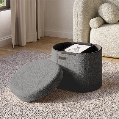 StorageBud Pleated Velvet Storage Ottoman, Round Ottoman with Storage, Modern Foot Stool Ottoman for Living Room and Bedroom, Gray Foot Rest