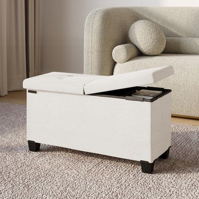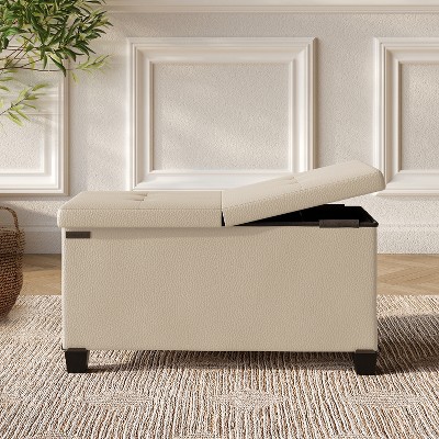 StorageBud Velvet Storage Ottoman Bench with Bins, 30-in Storage Bench for Bedroom End of Bed, Folding Foot Rest Ottoman, Beige