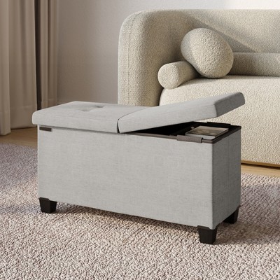StorageBud Velvet Storage Ottoman Bench with Bins, 30-in Storage Bench for Bedroom End of Bed, Folding Foot Rest Ottoman, Light Gray