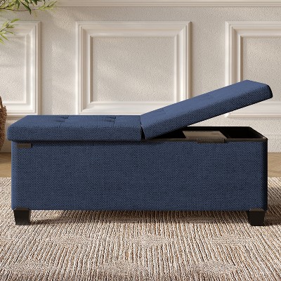 StorageBud Velvet Storage Ottoman Bench with Bins, 43-in Storage Bench for Bedroom, Folding Foot Rest Ottoman for Living Room, Blue