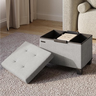 StorageBud Velvet Storage Ottoman Cube with Small Bin, 16-in Square Ottoman with Storage for Entryway and Bedroom, Small Ottoman Foot Rest, Light Gray