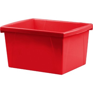 Storex 4 Gallon Storage Bin, Red | These storage bins are the ultimate companion for your bookshelf or cubby. The easy to grip handles are perfectly sized for big and small hands. They are made of impact resistant plastic and come in wonderfully bright colors. Use them to organize your room and store all your supplies. Measures 7.9"H x 11.3"W x 13.6"D.