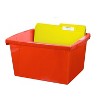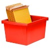 Storex 4 Gallon Storage Bin with Lid, Red | These storage bins are the ultimate companion for your bookshelf or cubby. The easy to grip handles are perfectly sized for big and small hands. They are made of impact resistant plastic and come in wonderfully bright colors. Use them to organize your room and store all your supplies. Clear snap on lid is included.