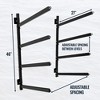 The Outdoor (4) Paddleboard Storage Rack is the ideal solution to save space and secure your boards outside. Built from powder-coated steel and aluminum, this wall-mounted rack can support up to (4) SUPs, up to 400 lbs. Each level is adjustable to fit the shape and size of your paddleboards. Holds recreational paddleboards, touring padddleboards, inflatable paddleboards, flatwater paddleboards, and even fishing paddleboards. Any remaining space can also be used to rack your paddles. Durable nylon padding and stainless steel hardware are built to handle the outdoor elements. Anchor points allow you to secure your boards with tie down straps or locking cables. Get organized and have your SUPs ready to go for your next trip to the water with this outdoor storage rack.