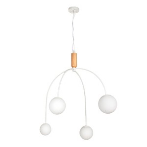 - A celestial orb of light, this pendant lamp features frosted glass spheres and a rubberwood frame, creating an ethereal glow