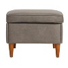 - Plywood and solid wood frame upholstered in smoky grey vegan leather with fabric lined storage compartment and solid wood legs