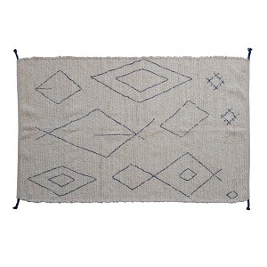 Storied Home Boho Woven Cotton Rug with Moroccan Design and Tassels, White and Blue