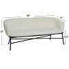 The Bowery collection offers stylishly versatile additions for any living space. The thoughtful proportions of this boucle sofa make it the perfect choice for smaller spaces, but can also serve as a generously sized loveseat for larger living rooms. The flowing, rounded shape, combined with iron cross-braces and richly textured fabric, feels distinctly New York City. This design is especially well-suited for modern, minimalist, and Scandinavian styles, while the muted color palette opens the piece up to contemporary and boho aesthetics as well. This piece is crafted with a durable iron leg frame that is upholstered in striking boucle fabric, adding texture and warmth to your living space. Measuring at 66 inches wide, 27 inches deep, and 28 inches high, with a seat height of 16.5 inches, this is perfect spot to curl up with a book or enjoy a cozy conversation with friends and family.