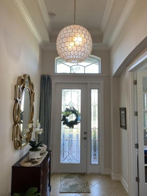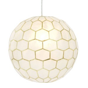 Storied Home Capiz Honeycomb Globe Pendant Light Capiz White Seashells