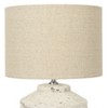 Add some style and personality to the space with this distressed white cement table lamp that showcases a distressed white cement base, topped with a beige linen drum shade. This table lamp is a rustic and boho-inspired addition to the home décor, as it features a cement base that has a round shape and a distressed white finish that creates a vintage look. The beige linen drum shade creates a cozy and inviting light that complements the cement base. This table lamp is suitable for any room that needs some extra texture and charm, such as the living room, bedroom, office, or any other area. It can also be a great gift for anyone who loves rustic and boho design. This table lamp requires one 40-watt bulb (not included) and is equipped with an in-line switch for easy on and off. It measures 13 inches round x 18.75 inches in height, and the cord length is 5 feet. Add this distressed white cement table lamp to the home and enjoy its beauty and functionality.