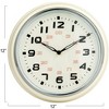 This 12-inch Round Metal Wall Clock combines functionality with style. The chrome finish provides a modern touch, while the cream color offers a warm, inviting look. It's an ideal addition to any room, enhancing the space with its simple yet sophisticated design. The clock's round shape and metal construction make it a durable choice for those who appreciate a blend of contemporary and classic elements in their timekeeping devices. The large numbers and clear clock hands make it easy to read from a distance, perfect for keeping track of time throughout the day. Hang it in the kitchen, living room, or office for a sleek and practical decor piece.