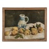 This Wood Framed Glass Wall Décor with Lemons and Pitcher is a delightful addition to any home seeking a touch of bucolic charm. The multi-color depiction of fresh lemons beside a classic pitcher evokes a sense of warmth and homeliness. Set within a sturdy firwood frame, the piece is both rustic and refined, making it a versatile choice for those who appreciate the beauty of the countryside or the simple elegance of a French country aesthetic. It's a celebration of the simple pleasures that make a house a home. With a spacious 23.5 x 17.75 inch display, this piece brings the artwork's vivid colors to life. This wall art is sure to brighten up any room and bring a touch of rustic charm to the decor.