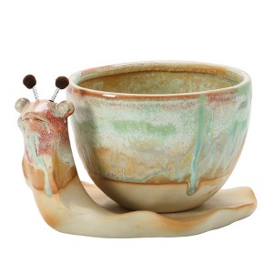 - An adorable stoneware planter with pot and saucer that create the shape of a snail