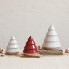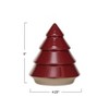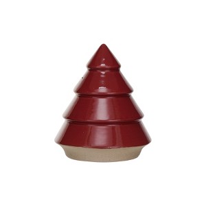 This red, unglazed stoneware tree is a beautiful and convenient way to decorate for the holidays. It features a smooth and simple stoneware tree with a natural and unglazed finish, creating a versatile and elegant effect. The tree has a red color that blends well with any space and style, adding a touch of sophistication and charm to the decor. The tree is ideal for displaying on a table, shelf, or mantel, where it can be used as a standalone piece or paired with other items. The tree is made of stoneware that is sturdy, durable, and easy to clean, making it a great choice for holiday decoration. It measures 4.25 inches in diameter and 5 inches in height, making it a subtle and attractive centerpiece. Elevate the holiday decor with this eye-catching Christmas tree, adding both style and a touch of whimsy.