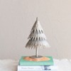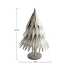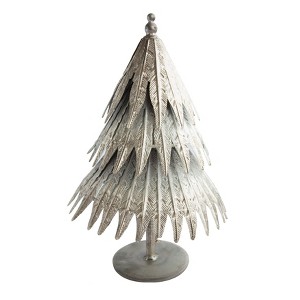 This distressed pewter embossed metal tree on stand is a lovely and unique way to decorate for the holidays. It features a round metal tree on a stand that has a distressed pewter finish and an embossed pattern, creating a cozy and rustic effect. It has a natural and elegant look that can suit any festive theme, from traditional to modern. This is ideal for displaying on a table, mantel, shelf, or window sill, where it can add a touch of warmth and charm to the space. It can also stand on its own or be paired with other trees or ornaments, making it a versatile and customizable option. It's made of metal that is durable, sturdy, and easy to clean, making it a convenient and reusable option. It measures 7.75 inches in diameter and 12.25 inches in height, making it a graceful and noticeable centerpiece. Elevate the holiday decor with this eye-catching Christmas tree, adding both style and a touch of whimsy.