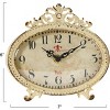 - This classically designed mantel clock features an intricate metal construction in a distressed finish