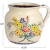 - A rustic yet refined decorative terra-cotta pitcher, adorned with a crackle glaze and a bouquet of flowers, each piece unique in its multicolored charm