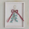 - A festive metal wall décor piece featuring a bow and mistletoe design, finished with a charming distressed multicolor effect