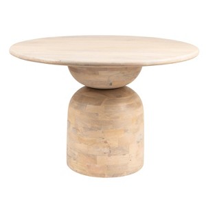 Storied Home Mango Wood Dining Table Natural: Whitewashed Finish, Pedestal Base, 47" Diameter - 1 of 4