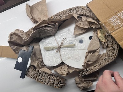 Storied Home Marble Snowman Shaped Cheese and Cutting Board with Stainless Steel Canape Knife, White, Black and Gold Finish