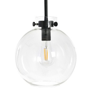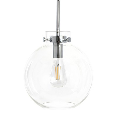 The refined simplicity of the Marson collection is brought to life through timeless spherical silhouettes and soft industrial detailing. The clear glass orb, bright, crisp light, and masterfully crafted metal detail exude polished minimalism. Hang in a bedroom, foyer, dining room, kitchen, or living area for the ultimate combination of style and warmth. From fashionable hardware and unique silhouettes, to timeless finishes and remarkable craftsmanship, Robert Stevenson Lighting is as enduring as it is versatile. The thoughtful addition of a ceiling light from this hand-picked collection will create a warm and welcoming ambiance that is guaranteed to impress. Edison bulbs are ideal for creating a cozy, inviting atmosphere. Light fixture measures 10 inches L x 10 inches W x 15 inches H.