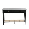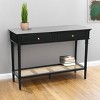 This narrow console table not only adds a touch of elegance to any living space, but it also provides ample storage to keep essentials organized and within reach. Boasting two drawers and a stunning natural cane storage shelf, this multipurpose table is perfect for displaying in and entryway or foyer to keep well-loved items close at hand, or behind a sofa to rest a beverage. The intricate details of Traditional style blend seamlessly with the natural cane shelf, which imbues a modern, contemporary aesthetic. Discover a secret hidden compartment at the back of the drawer, adding a clever and functional touch. Assembly is a breeze and requires no tools, so you can have your new table ready in minutes. Measuring 48 inches long, 16 inches wide, and 32 inches high, this coffee table is perfect for any living space.