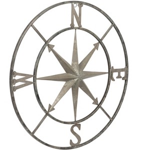 Storied Home Metal Compass Wall Décor, Distressed Silver
