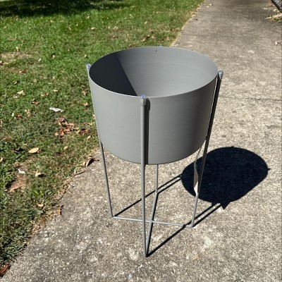 - This modern planter showcases sleek metal construction in a matte finish atop a minimalist stand