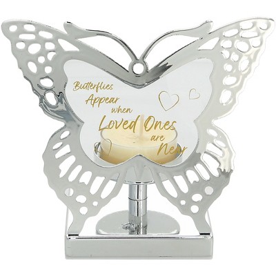 Storied Home Metal Tree Shaped Tealight Holder, Silver Finish