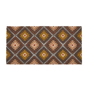 - This boho-inspired doormat features a natural coir construction finished with a multicolor geometric print