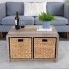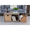 The Radius series is designed to be minimalist and modern when empty, but can easily be transformed with different bins, boxes, and baskets, offering endless style possibilities. The Coastal Oak finish and rustic contemporary design make this coffee table an excellent choice for those who love the farmhouse or coastal aesthetic. This versatile piece of furniture features a standard sized 13 x 13 inch storage compartment that can be customized to any style with bins, boxes, or baskets, making it a great fit for any interior design scheme. Made with durable engineered wood, this coffee table is durable and sturdy, with wide radius edges finished in scratch-resistant rustic wood grain laminate.