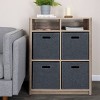 - This stylishly versatile console table bookshelf features a four standard sized 13 x 13 inch storage compartments, designed to be customized to any style with bins, boxes, or baskets