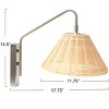 From modern and coastal to beach house and boho, this minimalist wall lamp features dramatically contrasting materials, resulting in stylish versatility; Its elegant iron base adorned with a conical, natural rattan shade result in the ultimate accent lighting solution