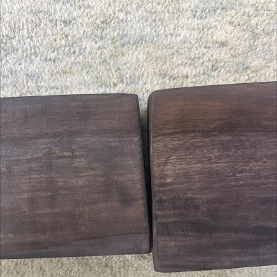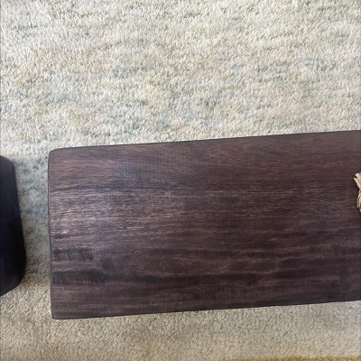 The wood finish is VERY dark in comparison to what is pictured. Also the measurements are not correct- so be aware- I bought two for a very specific idea and now I don’t think it will work since they are not identical