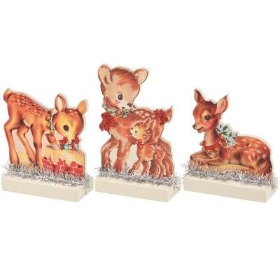 Storied Home Resin Deer with Wire Ribbon, Pink, Red and White