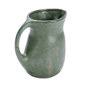 This stoneware pitcher with reactive glaze in matte teal is a stunning and practical addition to any home. It is made of stoneware, which is a premium and sturdy material that can withstand high temperatures and frequent use. It is microwave, oven, and dishwasher safe, making it easy and convenient to use and clean. It has a reactive glaze finish in matte teal, which creates a smooth and serene appearance. The glaze also makes each piece unique and slightly different. The pitcher has a round shape and a curved handle that makes it easy to hold and pour. It has a large capacity of 2.5 quarts, which is enough to serve a large group of people. It can be used for serving water, juice, milk, or tea, or for displaying flowers, plants, or utensils on a table or countertop. It can blend with any farmhouse, French country, coastal, lodge, or boho style kitchen or dining room. It measures 9 inches in length, 5 inches in width, and 8.5 inches in height, making it a generous and spacious pitcher. This will impress the guests and enhance the food presentation.