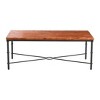 - Heavy iron legs, underframe frame, and cross brace paired with solid wood top in a rustic deep grain heavily textured warm walnut finish