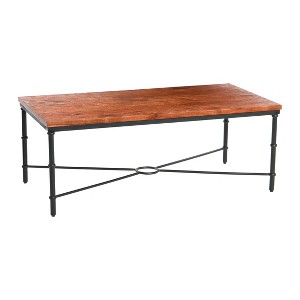 Storied Home Saratoga Rustic Solid Wood and Metal Coffee Table, Warm Walnut Finish