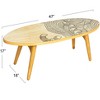 This Oval Coffee Table captures the essence of the sea with its surfboard silhouette and dynamic sea waves design. At 47 inches long and 17.75 inches high, it is a substantial piece that offers ample space for every seaside mementos and daily essentials. The table's design invites the calm and serenity of the ocean into the living space, making it an ideal match for decor that celebrates the coastal lifestyle. Its wooden build promises longevity, while the waves pattern is a tribute to the beauty and power of the sea. This table is prepared to make a statement in the home, evoking the spirit of the surf with every glance.