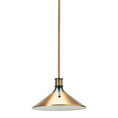 - This strikingly modern pendant light showcases a minimalist, angular shade hung from a sleek metal frame