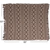 Enhance the home with this recycled cotton blend throw with a diamond pattern and fringe in brown and beige. The tonal brown and beige combination is neutral and elegant, complementing many color schemes and styles. This throw blanket is ideal for adding a natural feel to any room, whether lodge, cabin, or farmhouse in style. When not in use decorate the sofa, bed, chair, or bench. Substantial in weight, the throw blanket measures 60 inches long by 50 inches wide, a versatile size for draping. Machine wash cold and tumble dry low to keep it clean and fresh.