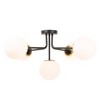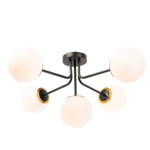 - This strikingly modern flush mount ceiling light fixture features a brush black metal frame adorned with 5 gold-accented opal glass orbs
